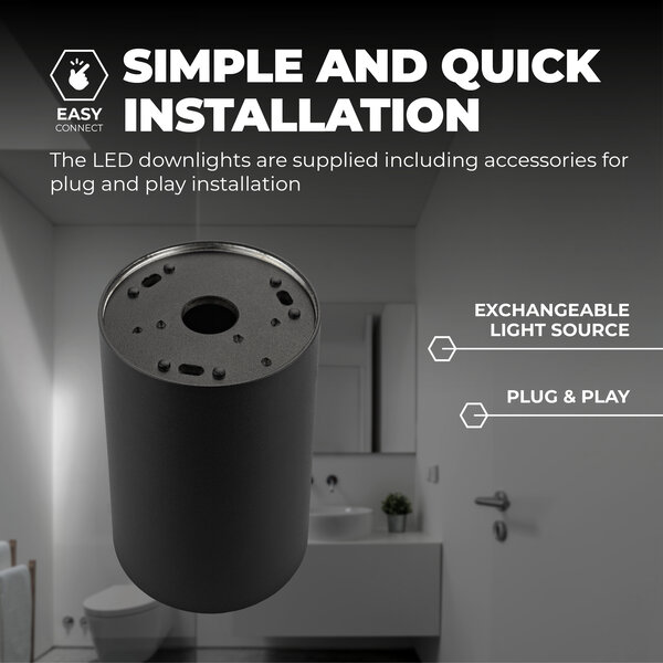 Dieser Aufbaustrahler eignet sich nicht nur für Neubauten, sondern auch ideal für Renovierungsprojekte. Mit einem Durchmesser von 80 Millimetern deckt das Gehäuse in vielen Fällen bereits vorhandene Deckenaussparungen ab, sodass Unebenheiten oder alte Öffnungen sauber kaschiert werden. Das Ergebnis ist ein ordentliches, gepflegtes Gesamtbild, das wirkt, als wäre die Beleuchtung von Anfang an genau so geplant gewesen.